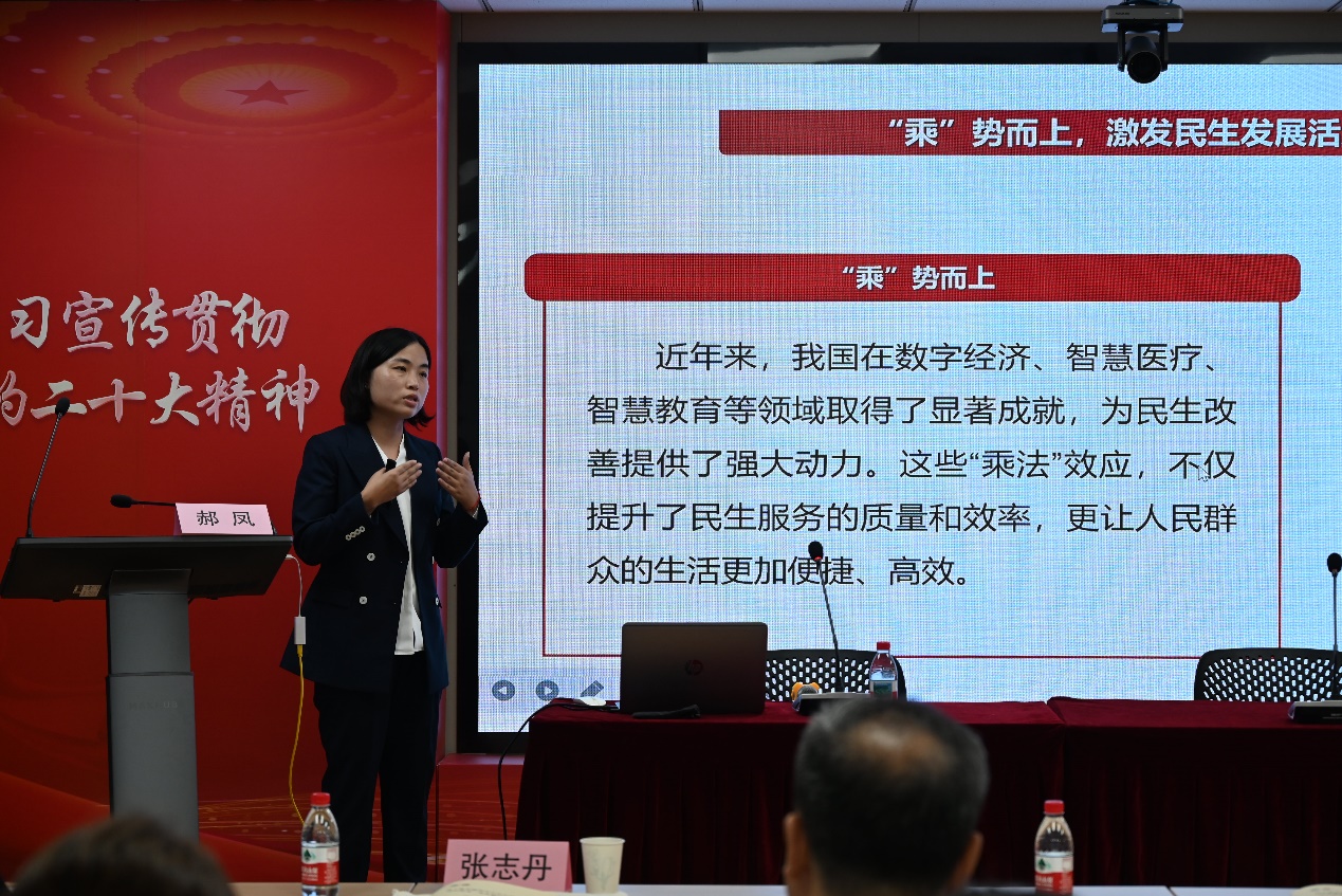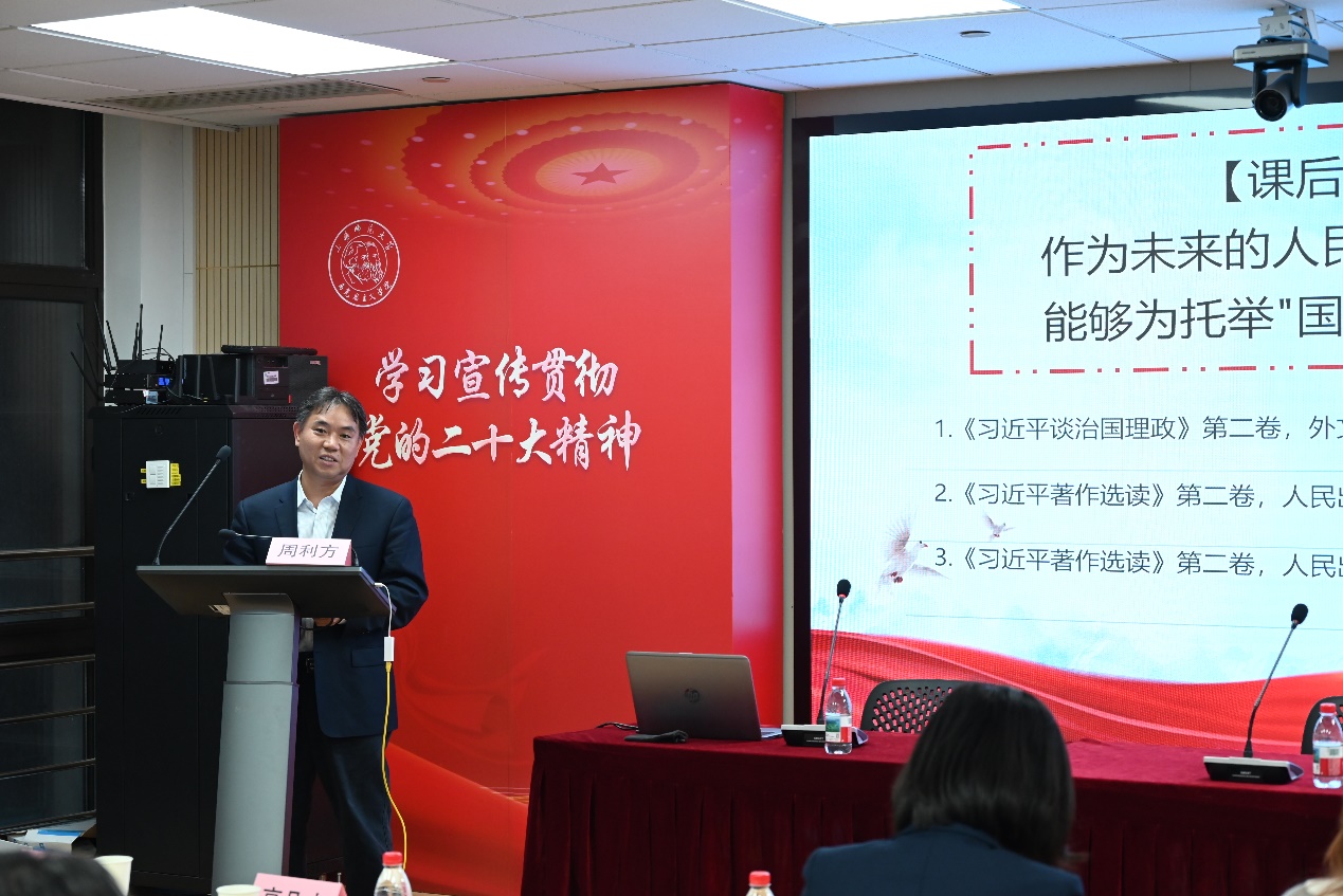 上海师范大学马克思主义学院郝凤老师则围绕“国之大者”展开大学阶段教学,以“是什么——为什么——怎么做”为逻辑主线,层层推进,阐明“让人民生活幸福”的时代意涵。上海旅游高等专科学校马克思主义学院院长周利方教授对郝凤的精课做了详细的点评,指出了多处亮点。
