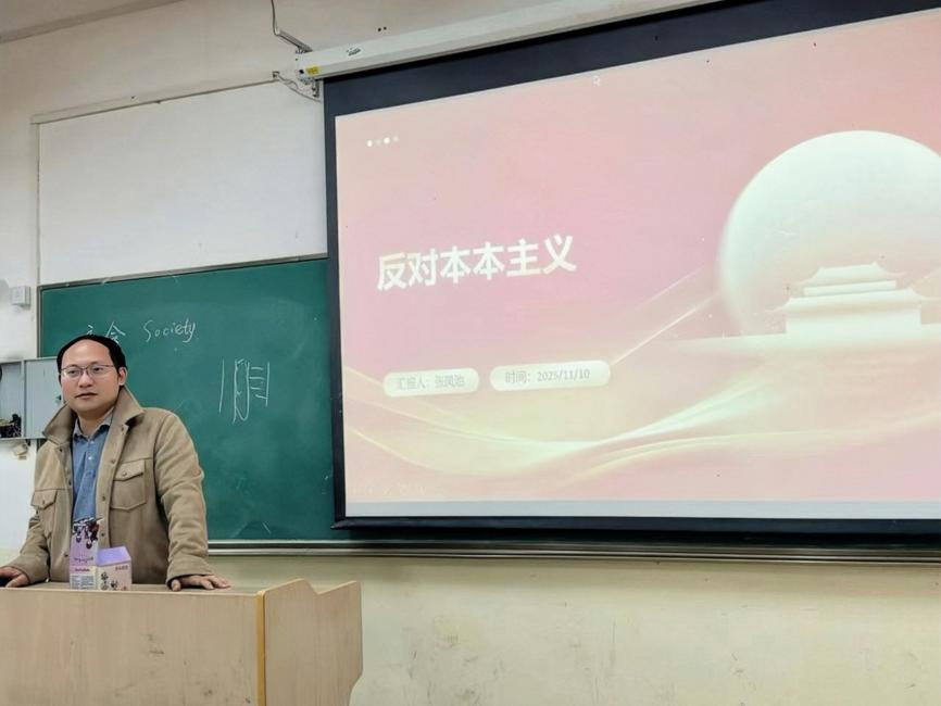 为深入研习党的理论精髓,推进经典著作学习入脑入心,11月10日,马克思主义学院于奉贤校区第四教学楼C座104开展了经典著作研读分享会。张凤池老师带领本科生同学们一同走进《反对本本主义》的思想世界,共同解锁马克思主义中国化的实践密码。