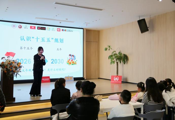 蓝色,是未来的希望、家国的底色。3月29日,系列活动收官之作“我与祖国共成长:书香伴我走进‘十五五’规划”圆满开展。主讲杜冰艳以“个人小目标”互动切入,志愿者协助开展课堂互动与手工实践,带领孩子们认识国家“十五五”规划的内涵,通过“点亮四颗心”板块,结合AI课堂、《窗边的小豆豆》绘本故事、上海“一江一河”案例、安全问答等形式,展现国家规划对青少年成长的保障。孩子们亲手折制小书、写下五年成长目标,将个人规划与国家蓝图紧密相连,齐声诵读成长心语,为四色书页拼图画上圆满句号。