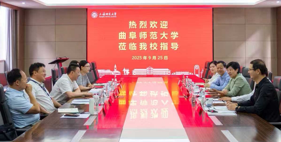 2025年9月25日,曲阜师范大学党委副书记李志红一行来我校调研交流,调研会在上海师范大学徐汇校区外宾楼101会议室召开,会议由上海师范大学党委副书记、副校长朱惠军主持。曲阜师范大学党委副书记李志红、马克思主义学院党委书记陈庆国、院长孙迪亮、副院长刘宝杰、党委宣传部理论科科长乔希,上海师范大学马克思主义学院党委书记刘凤、院长张志丹、校党委宣传部副部长周芸、马克思主义学院思想政治教育系主任张凤池参加调研交流活动。