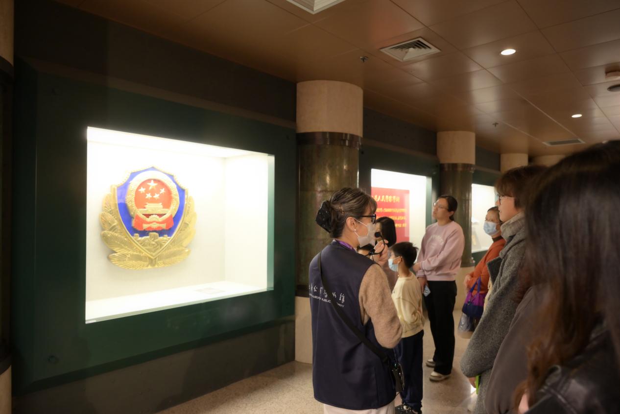 踏入上海公安博物馆,在展馆讲解员的悉心引导下,师生们首先步入气势恢宏的序厅。多媒体演示的光影流转间,老式警车、泛黄的档案与模拟的犯罪现场依次呈现,仿佛一扇通往历史深处的大门缓缓打开,瞬间将大家带回了上海公安维护城市秩序的峥嵘岁月。当看到公安干警们在各种危险任务中冲锋在前的影像资料时,师生们仿佛触摸到了守护城市平安的坚固盾牌,真切感受到那份责任与担当的分量。