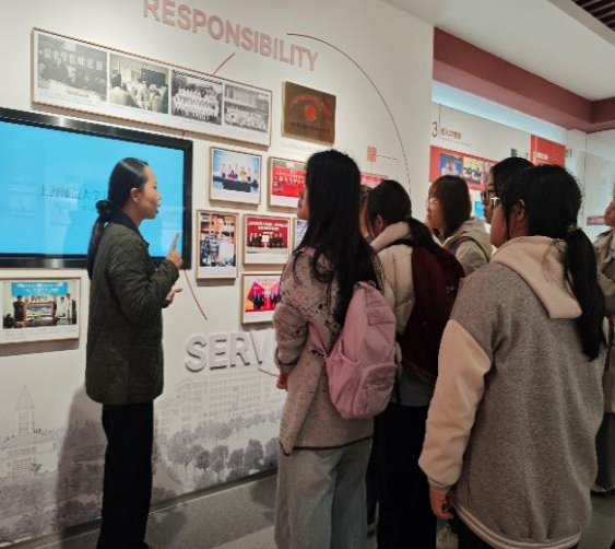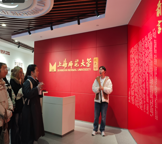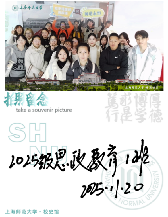 11月20日下午,思政系“习近平总书记关于教育的重要论述研究”课程用行走扩容思政课,带领思想政治教育专业2025级本科生30余人走进徐汇校区校史馆和会议中心,开展了一场以“感悟教育家精神,解锁幸福教师成长密码”为主题的“行走的大思政课”。本次活动由我院“校史馆里的思政课”教学团队开展“沉浸式”现场教学,并邀请优秀中学教师与青年学子进行互动交流。