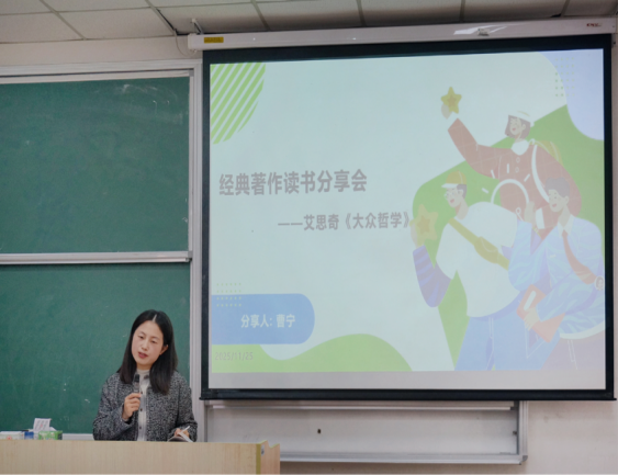 为帮助本科生掌握科学思维工具,让经典著作在新时代焕发蓬勃生机,11月25日,我院第五期经典著作研读分享会在奉贤校区第五教学楼B座108如期举行。本次活动特邀曹宁老师担任主讲嘉宾,带领同学们沉浸式走进《大众哲学》的思想殿堂,一同揭开哲学的神秘面纱,感受经典著作的思想魅力。