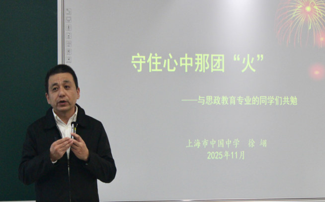 培养新时代有情怀的思政课教师,是思政专业的不懈追求。11月12日,中国中学党总支书记徐翊老师以“守住心中的那团火”寄语未来的思政课教师。他用伦敦马粪危机与AI教学案例提醒同学们,面对颠覆式变革需保持理想热度,要坚持从“传道、授业、解惑”三个维度追求教师专业成长;在信息差被抹平的时代,把态度、目标、引导与耐心作为教师的核心竞争力,夯实理论功底、锤炼共情能力,永远守住心中那团育人之火,让思政课堂有温度、有力量。
