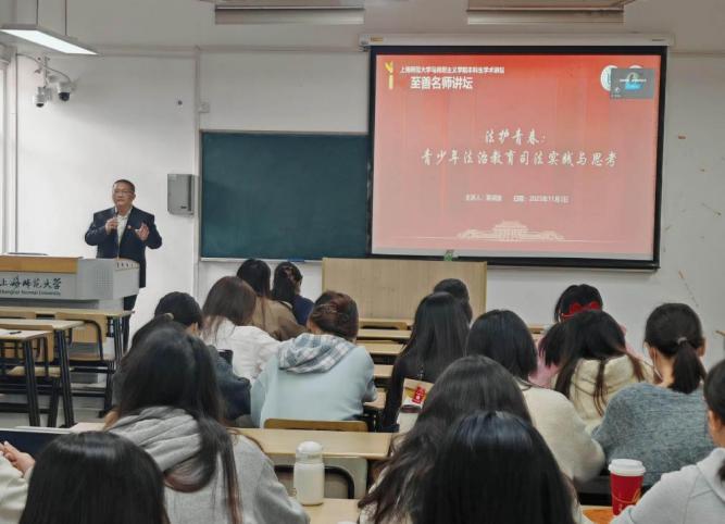 教师的职责不仅仅是“教书”,更重要的是“育人”。聚焦师范生能力提升,思政专业师范生不仅要学会教学,更要学会育人。11月3日,奉贤区人民法院青少年法治宣传主讲法官黄训迪在题为“法护青春”报告中,用真实的案例揭示青少年法治意识缺失的惨痛代价,提出以习近平法治思想为指导,构建“学校——家庭——社会”协同体系,按“认知——实践——内化”三阶递进将法治观念融入学生日常行为。紧密结合法治实践的精彩报告,使思政专业本科生对习近平法治思想对于思政育人的重要意义有了更加深入的感悟,也对思政育人与法治教育的关系有了更加深刻的认识。