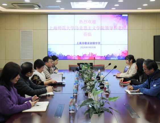 为深化校友联络、拓展育人平台,1月20日,上海师范大学马克思主义学院党委副书记、副院长、院校友会秘书长万瑾,院办主任、院校友会副秘书长姚承志,学工办主任白瑶一行赴上海市敬业初级中学走访交流。敬业初级中学校长蔡育红,我院14届校友、校党支部副书记陆俊杰一行人热情接待并参与座谈。